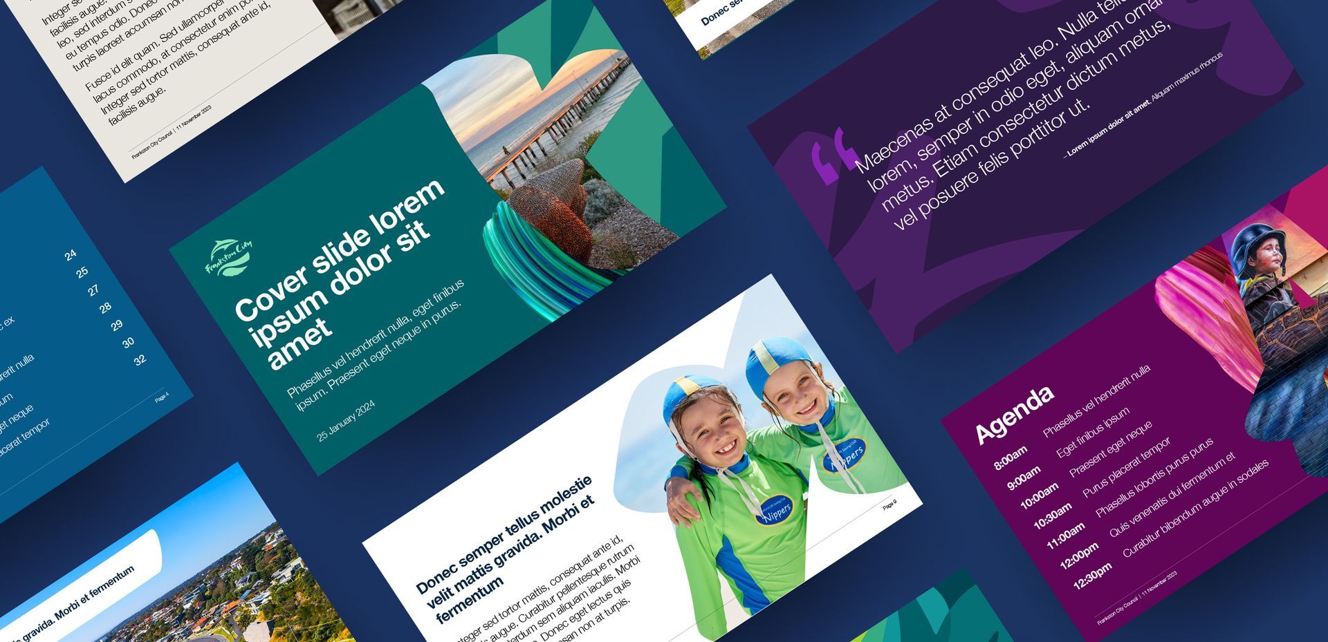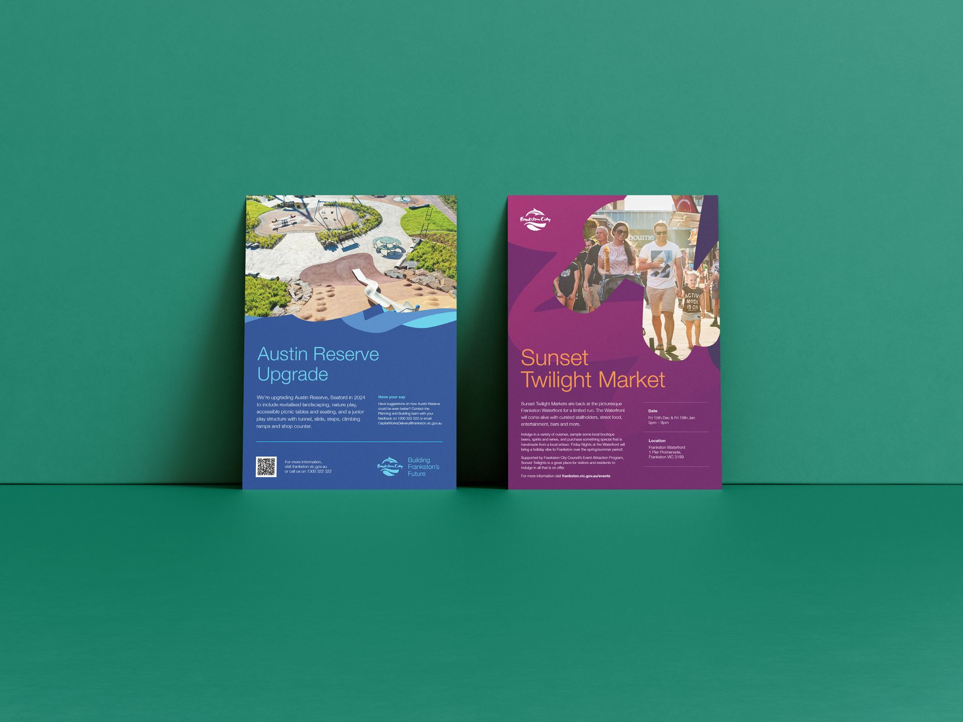 Our colour palette is vast, to reflect Frankston City’s broad spectrum of selling points. Council departments and projects are not limited to specific colour codes, to reflect the multi-faceted community benefits in everything we do.